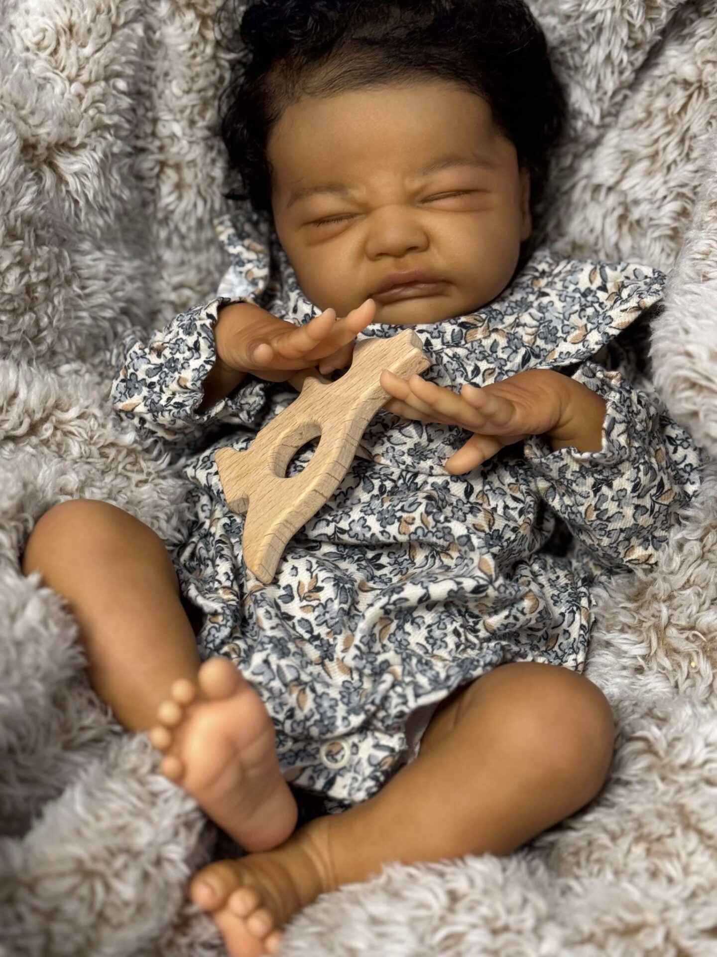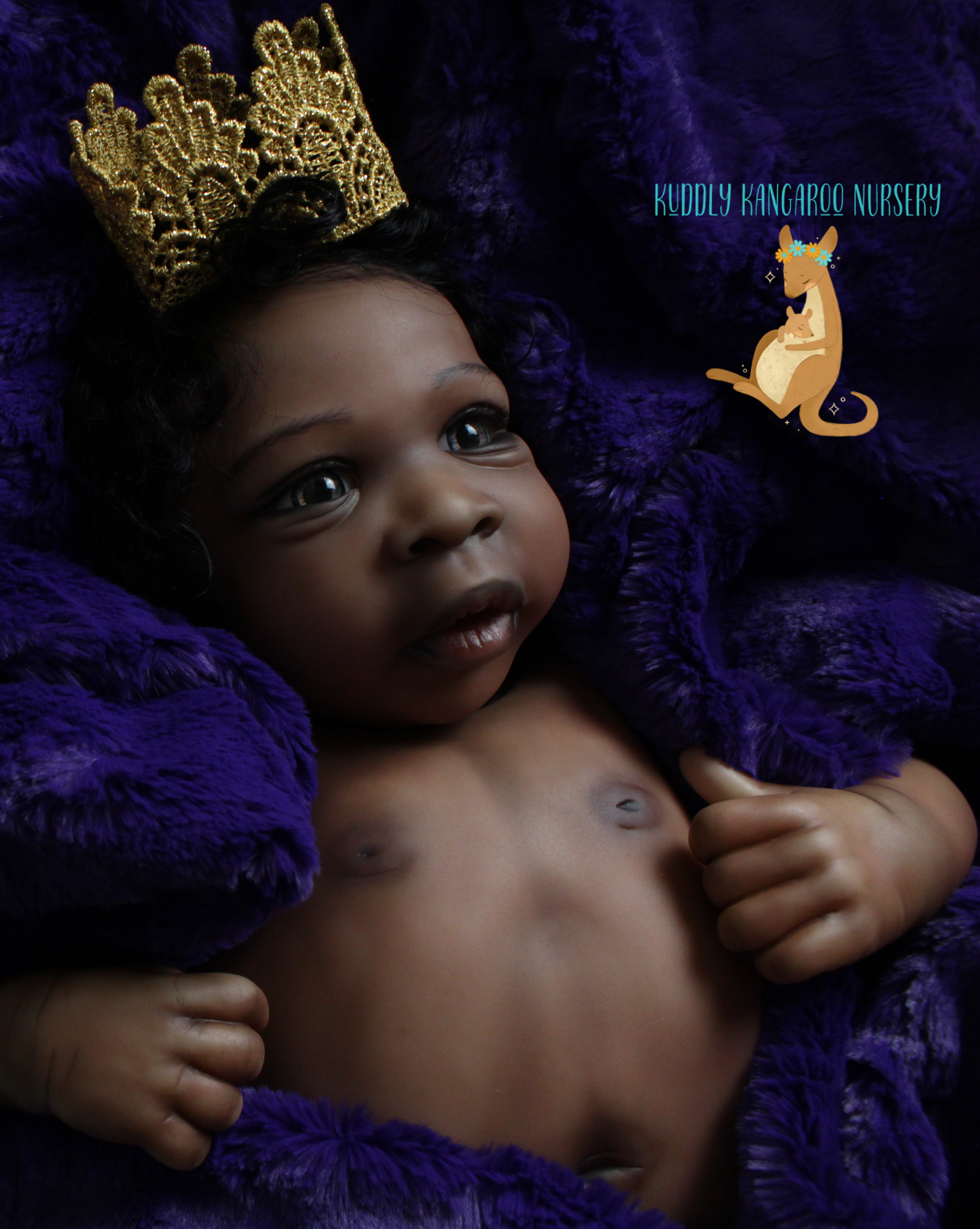 This baby will be finished with mono/micro rooted hair and textured skin. Other details for realism may be added depending upon the baby’s age such as dry skin, lip blisters, or heel pricks.